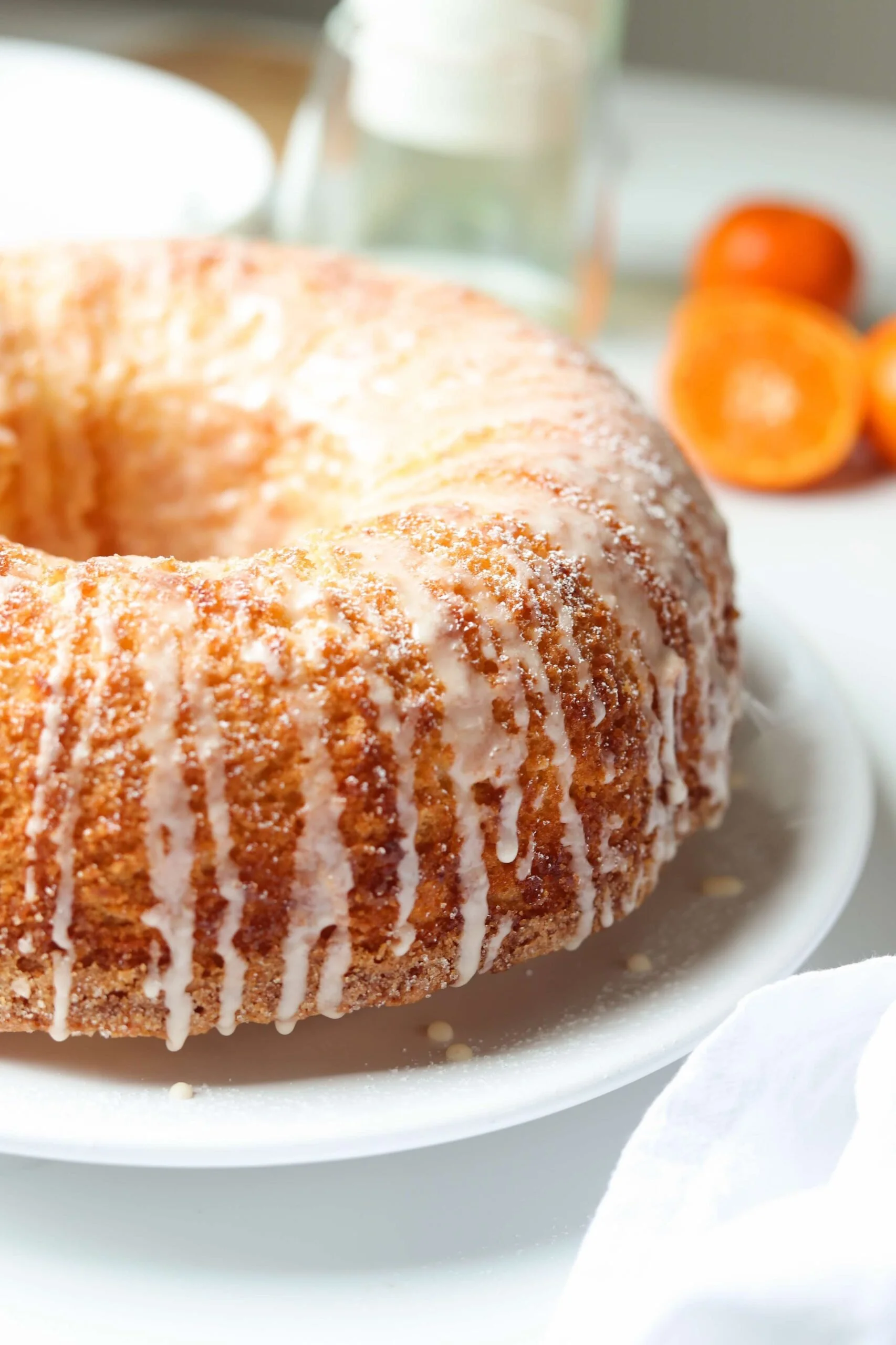 ● Spoon 3⁄4 of the glaze on the cake while it is still in the pan